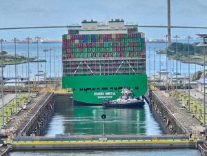 Figure 1: Picture of Panama Canal crossing by M/V Evergreen Ever Meta taken during a cruise on M/V Grand Princess